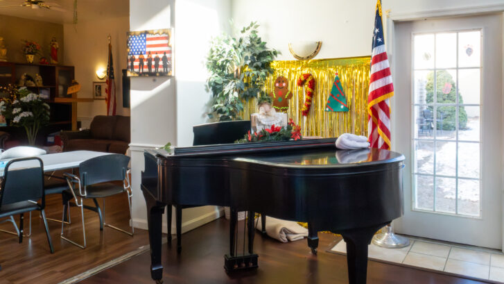 Throughout all four Manors of the Valley locations, shared spaces are transformed for the season. Lounges and sitting areas feel especially cozy, with holiday centerpieces, wreaths, and decorative touches that add warmth without overwhelming the space. Dining rooms are also dressed up for the season, making everyday meals feel a little more special during this time of year. These festive details help turn ordinary moments into meaningful holiday experiences.