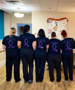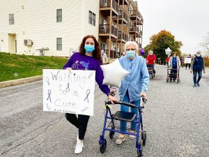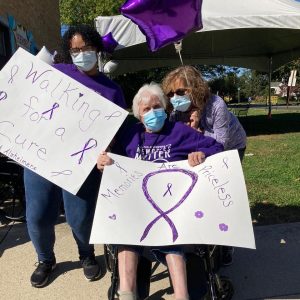 Alzheimer’s is a progressive disease where dementia symptoms gradually worsen over a number of years. In order to raise awareness of this unfortunate disease, the Manor’s decided to join together in walking for a cure. Our residents chose to walk with loved ones and staff in honor of supporting those who are affected by Alzheimer’s.