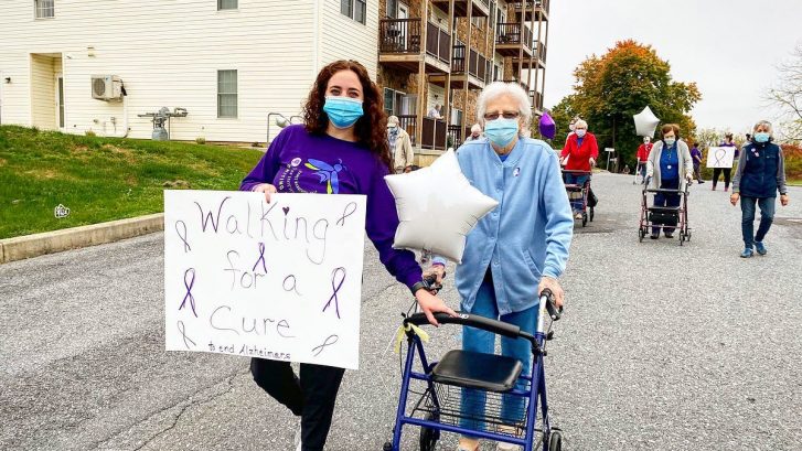 Alzheimer’s is a progressive disease where dementia symptoms gradually worsen over a number of years. In order to raise awareness of this unfortunate disease, the Manor’s decided to join together in walking for a cure. Our residents chose to walk with loved ones and staff in honor of supporting those who are affected by Alzheimer’s.